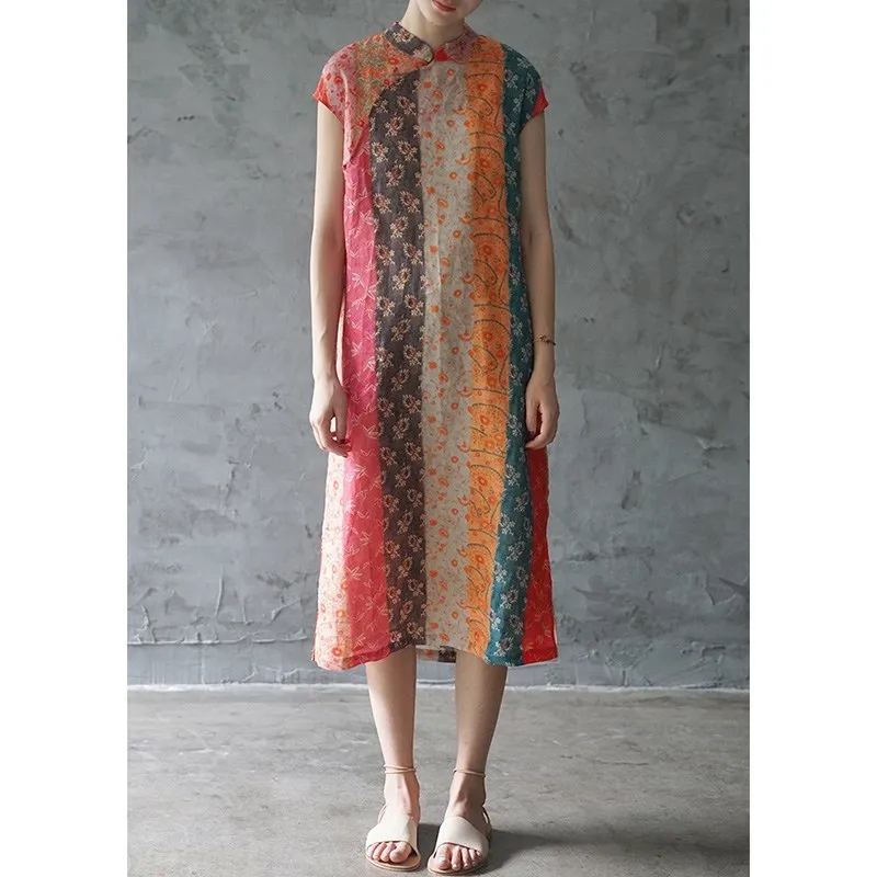 เสื้อลินินปักคอวีแขนยาวชาติพันธุ์วินเทจ